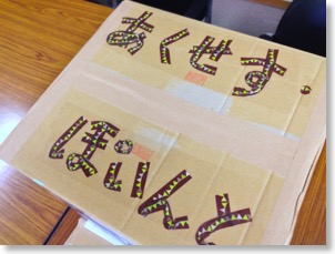 さて、その飯野中学校様への寄贈ですが、以下の写真の通り、データ処理をした後、手作りパッケージ&デコレーションさせていただきました(こんなこぢんまりとした場所でやっているんです:笑)。今回のデコレーションの特徴は、梱包箱のトップに、「あくせす・ぽいんと」というロゴを、音符のデザインの入ったテープで標記したことです。あくせす・ぽいんとのキャラクターとあわせることで、「贈られて嬉しくなるモノ」にしたいという想いを込めたつもりですが、いかがでしょうか?…φ(・ω・*)☆・゚:*。